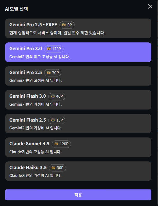 채팅방 AI 선택 모달창