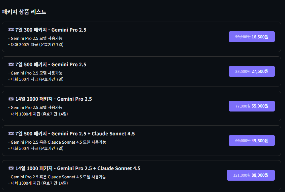 패키지 구매 페이지