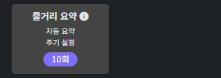 줄거리 요약 주기를 5회, 10회 혹은 잠시 꺼둘 수있는 기능을 만들었습니다.