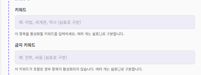 로어북 기능에 금지 키워드 기능을 추가하여 안내 드립니다.