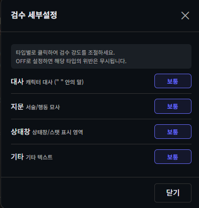 베타 테스트 중인 설정 검수 AI (편집자 AI)에 검수 세부 설정 기능이 추가되었습니다.