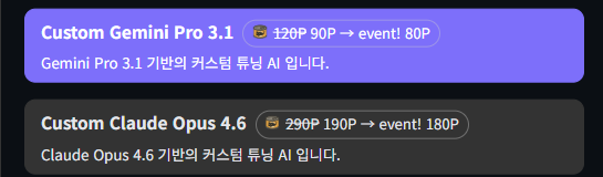 신규 커스텀 모델 2종 공개 (feat. Opus, 3.1 Pro)
