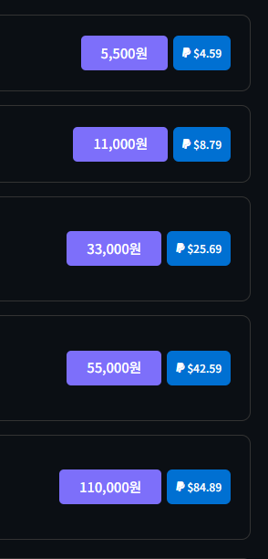 현재 Paypal로 구매가능한 상품은