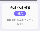 또한 명칭도 사칭 방지 -> 유저 묘사 설정 으로 변경하였습니다.