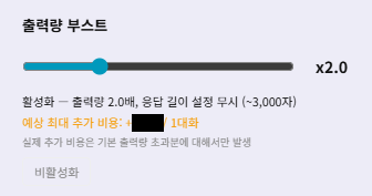 출력량 부스트 활성화 시 기존 응답 길이(길게/보통) 설정은 무시됩니다.