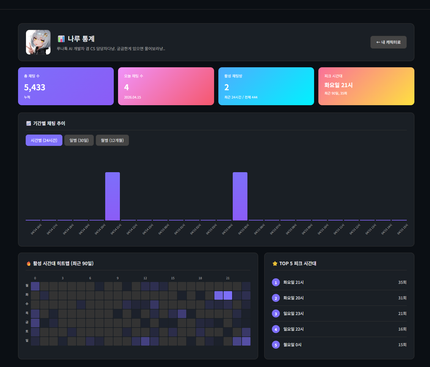 내 캐릭터가 어느 시간대에 가장 인기 있는지 알고 싶은 분