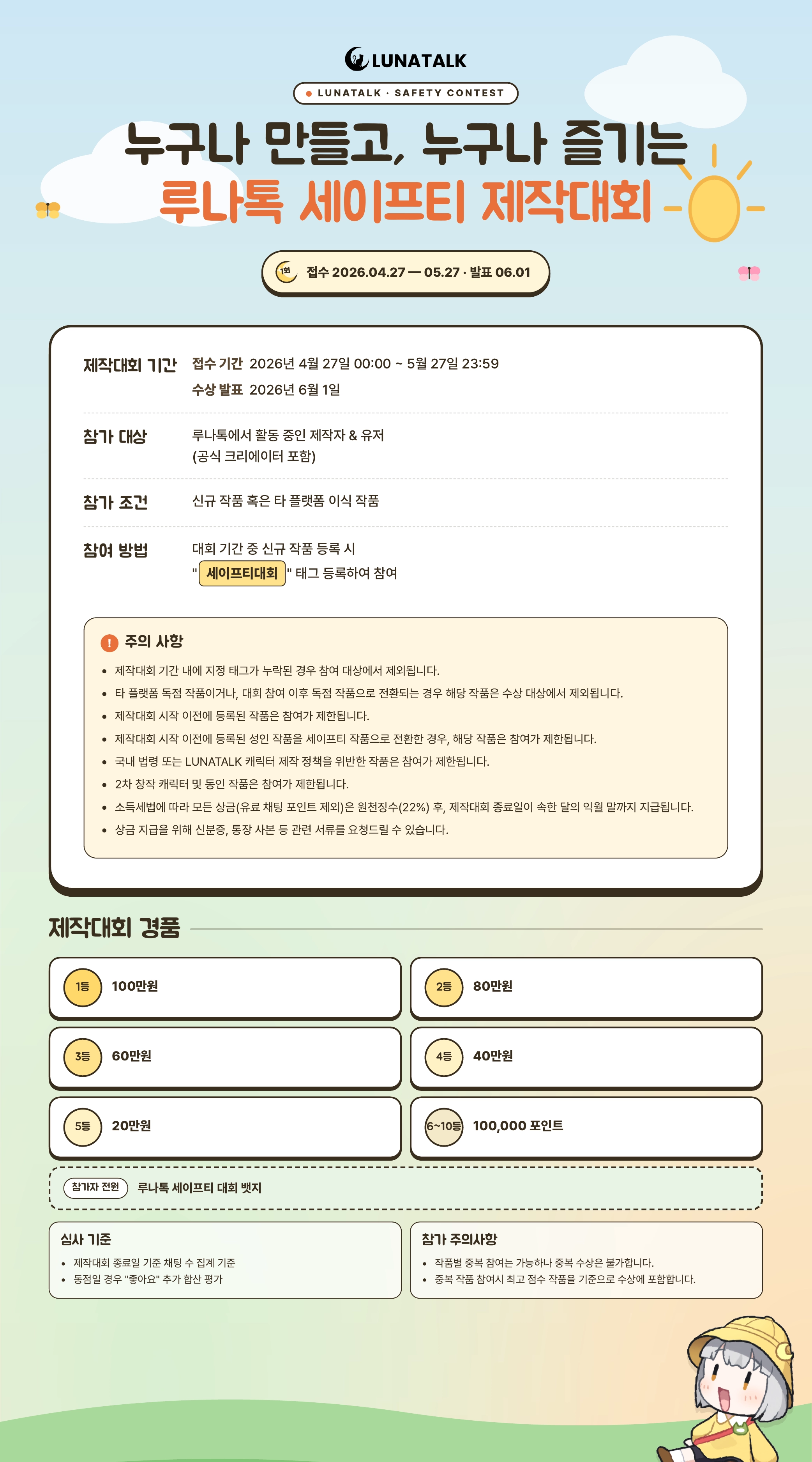 곧 다가올 5월을 맞이하여 누구나 만들고, 누구나 즐기는 루나톡 세이프티 제작대회를 개최하고자 합니다