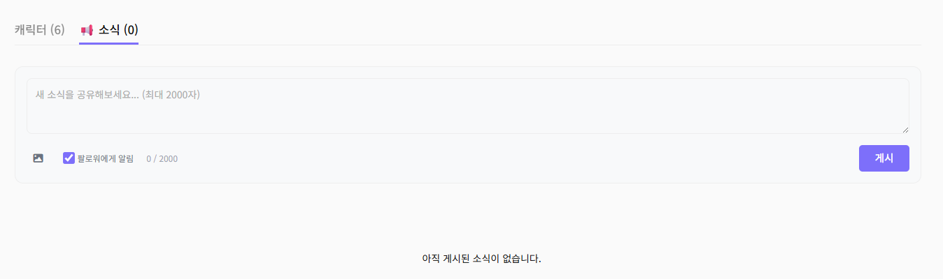 위 기능은 제작자 페이지의 '소식' 탭에서 이용 가능하시며