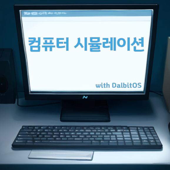 컴퓨터를 하는 시뮬레이션 [기능: 📧메일,🌐인터넷,📔노트,🎵음악,📺동영상, 💬커뮤니티,⚙️설정,❔도움말]